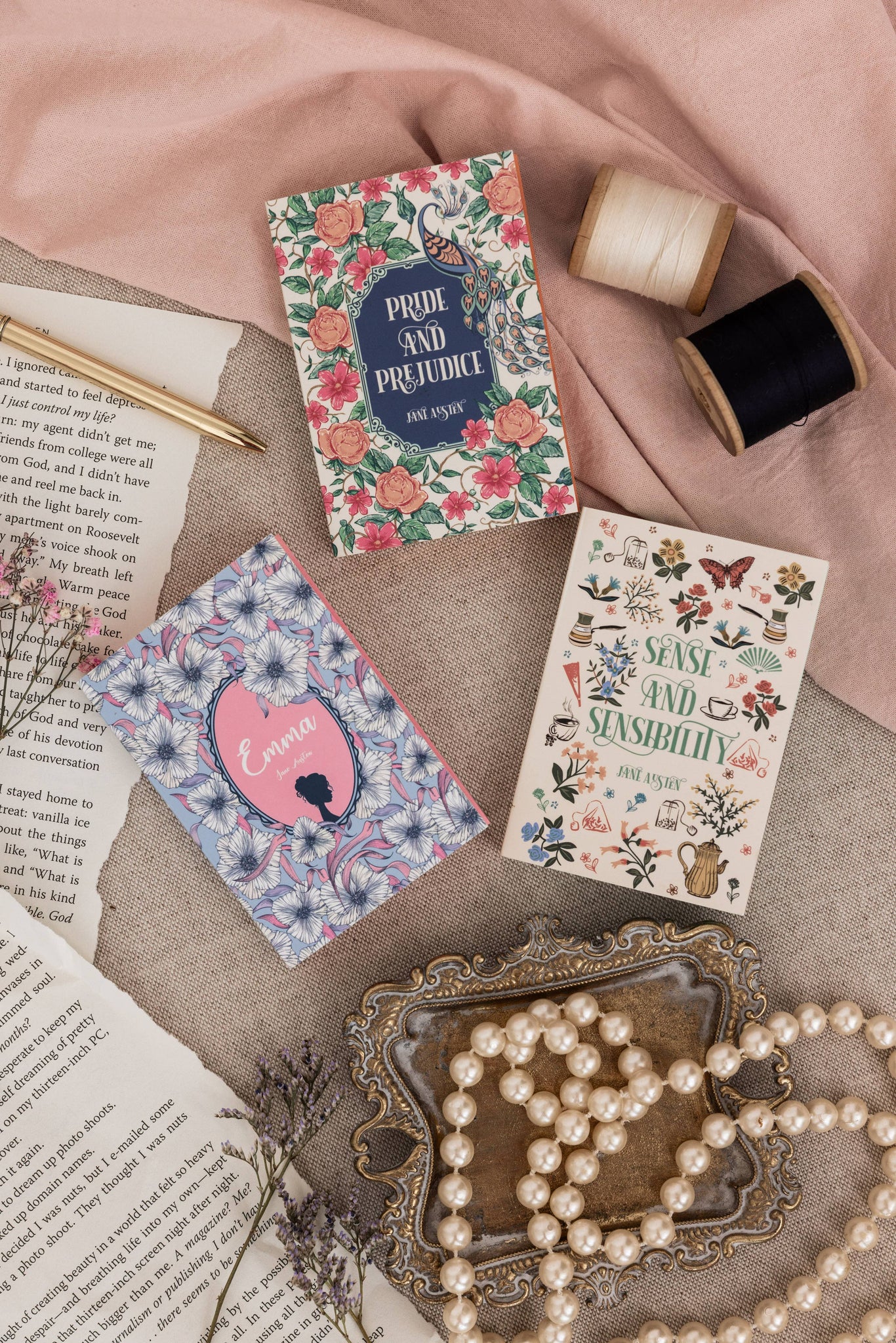 Good things come in threes, including this set of mini book-shaped notepads! Featuring three beloved Jane Austen titles, a wrap-around design, and colored pages, these mini notepads will add literary charm to your day. Small enough to tuck away in your daily bag and cute enough to keep out on your desk, this set of 3 notepads is perfect for casual bookworms and avid readers. Each individual notepad is 4 x 2.75in.
